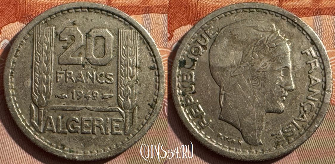 Алжир 20 франков 1949 года, KM# 91, 389s-113