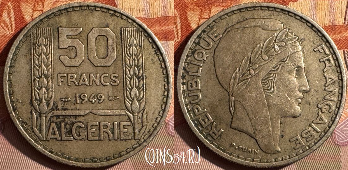 Алжир 50 франков 1949 года, KM# 92, 377s-037