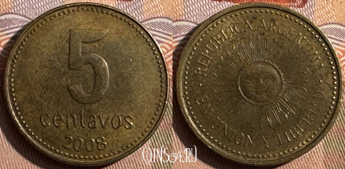 Аргентина 5 сентаво 2008 года, KM# 109b, 425s-020