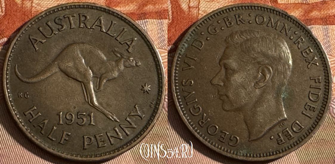 Австралия 1/2 пенни 1951 года, KM# 42, 068t-106