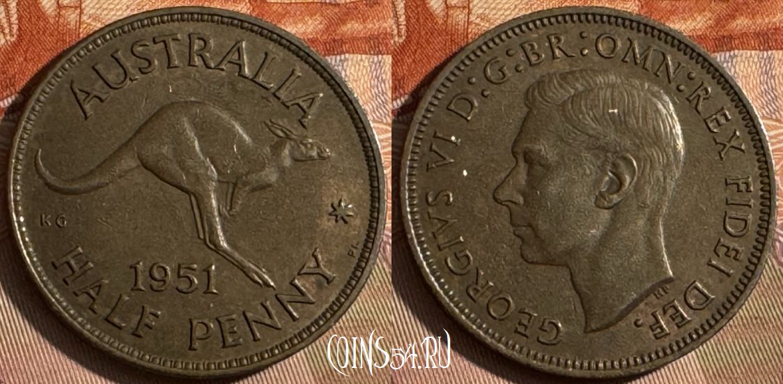 Австралия 1/2 пенни 1951 года, KM# 42, 068t-113