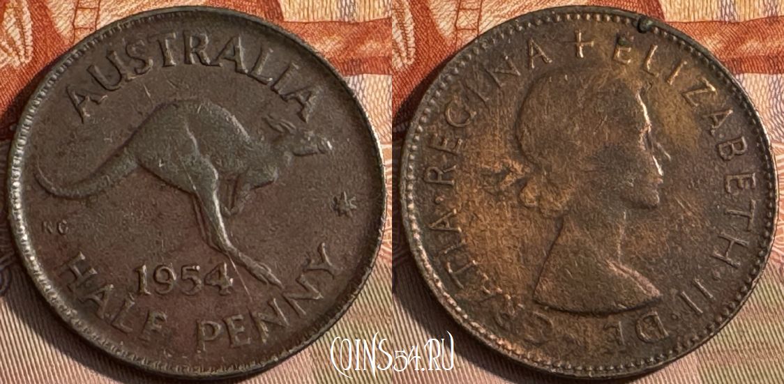 Австралия 1/2 пенни 1954 года, KM# 49, 059t-005