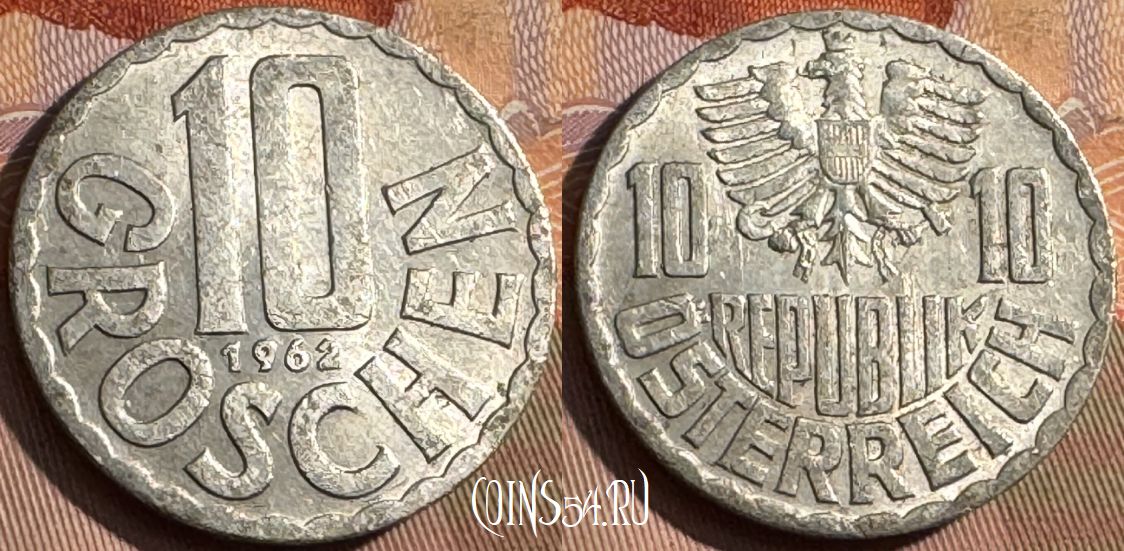 Австрия 10 грошей 1962 года, KM# 2878, 379s-053