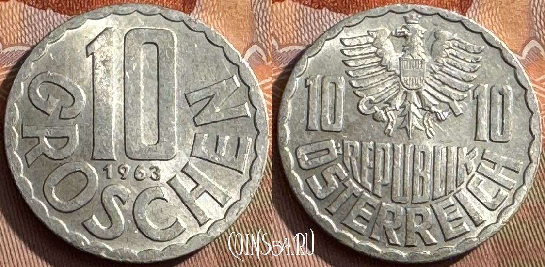 Австрия 10 грошей 1963 года, KM# 2878, 385s-088