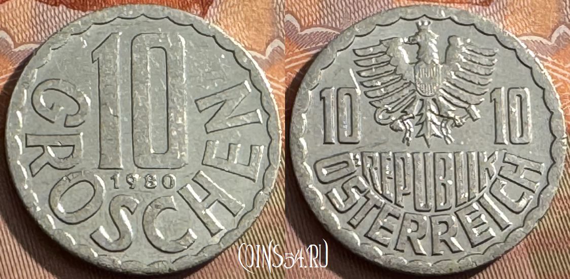 Австрия 10 грошей 1980 года, KM# 2878, 386s-001
