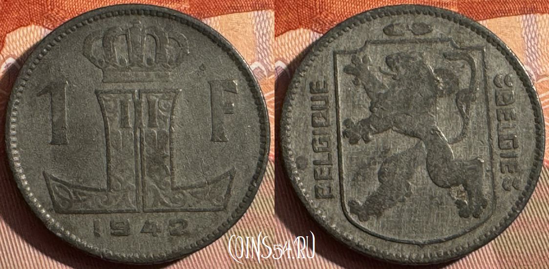 Бельгия 1 франк 1942 года, BELGIQUE - BELGIE, KM# 127, 372s-116