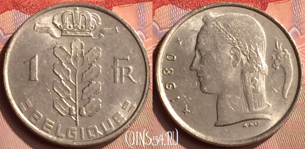 Бельгия 1 франк 1980 года, BELGIQUE, KM# 142, 417-023