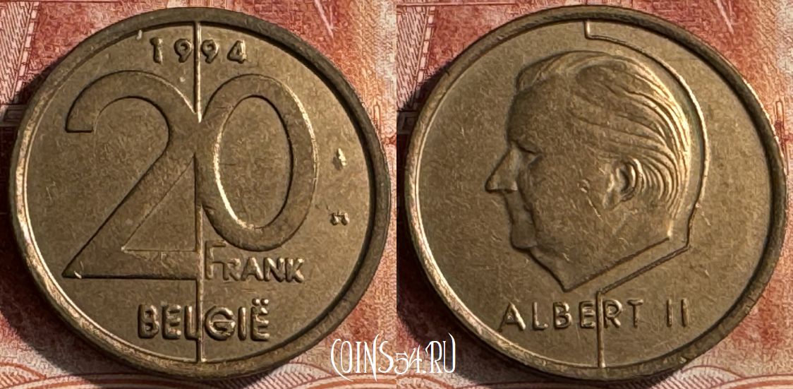 Бельгия 20 франков 1994 года, BELGIE, KM# 192, 447s-021