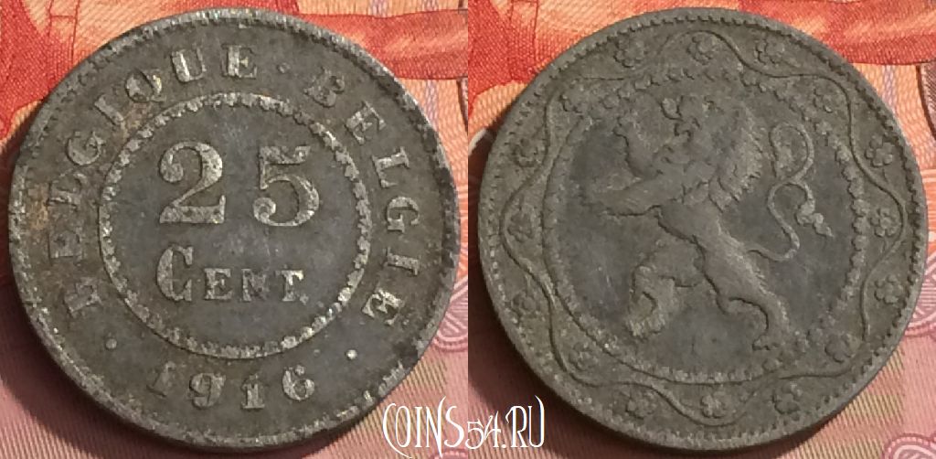 Бельгия 25 сантимов 1916 года, KM# 82, 222o-143