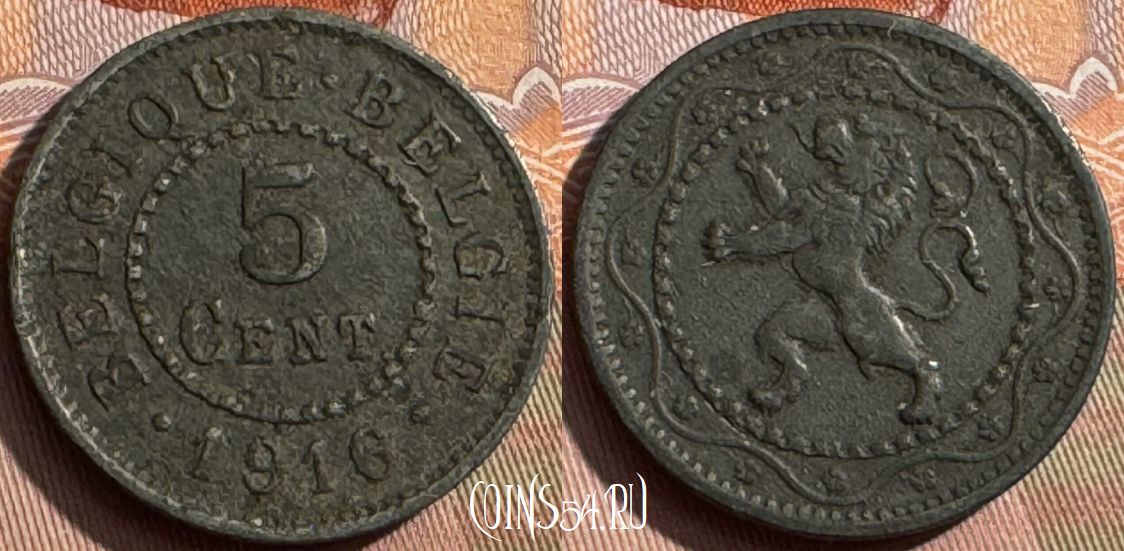 Бельгия 5 сантимов 1916 года, BELGIQUE - BELGIE, KM# 80, 386s-039