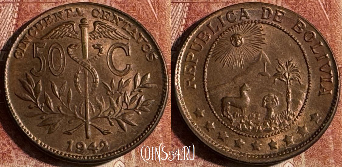 Боливия 50 сентаво 1942 года, KM# 182a, 501s-031