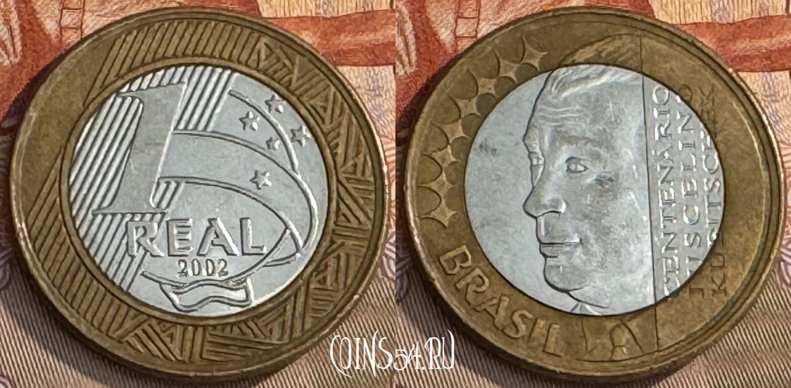 Бразилия 1 реал 2002 года, KM# 656, 235t-039
