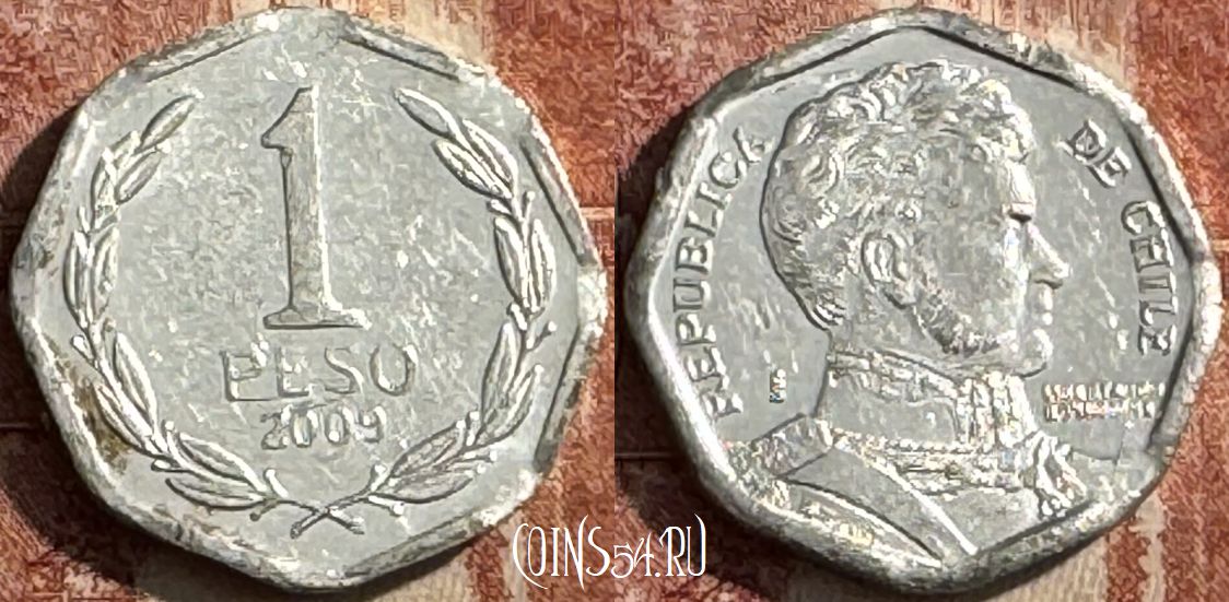 Чили 1 песо 2009 года, KM# 231, 049s-149