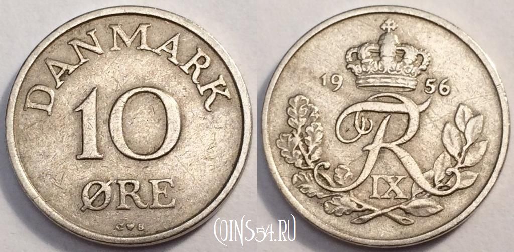 Монета Дания 10 эре 1957 года, KM# 841, 82-038a