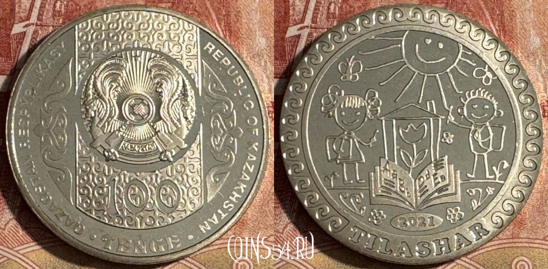Аверс: 100 TENGE QAZAQSTAN RESPÝBLIKASY REPUBLIC OF KAZAKHSTAN