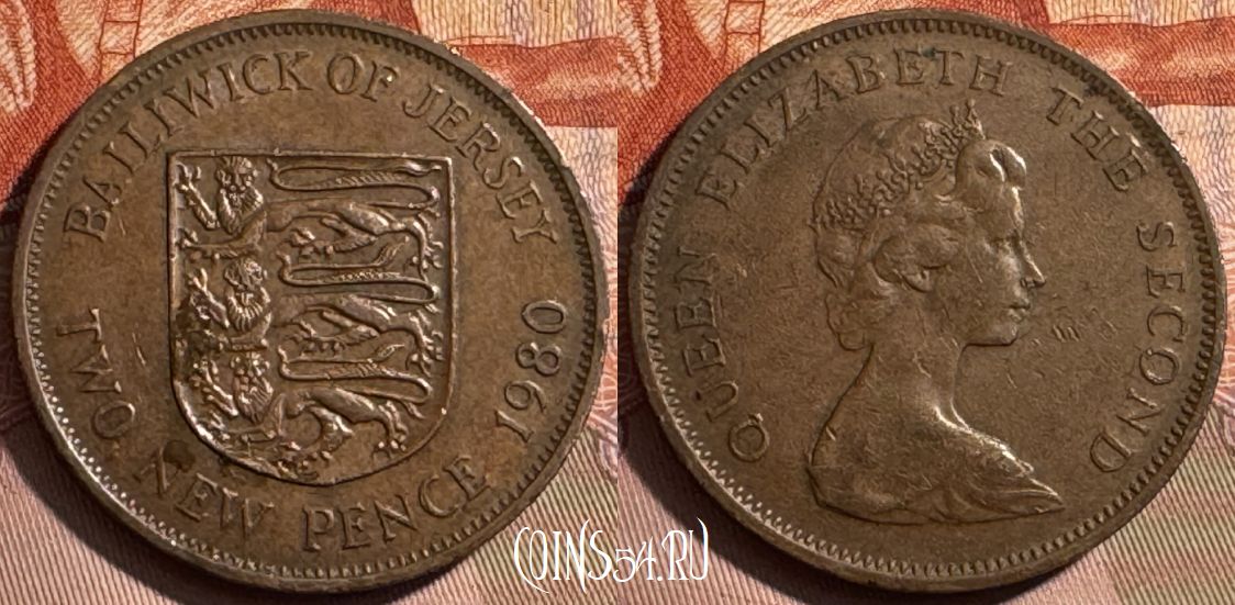 Джерси 2 новых пенса 1980 года, KM# 31, 408s-007