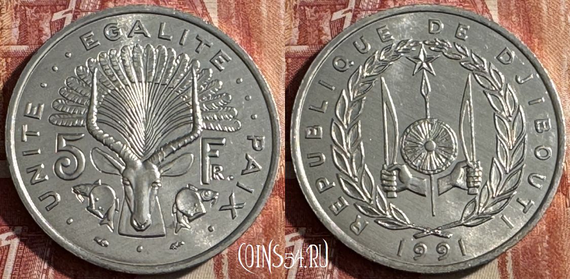 Джибути 5 франков 1991 года, KM# 22, 502s-082