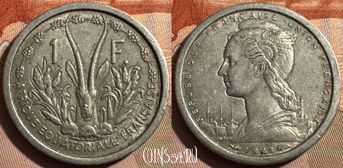 Французская Экваториальная Африка 1 франк 1948 года, KM# 6, 397s-005