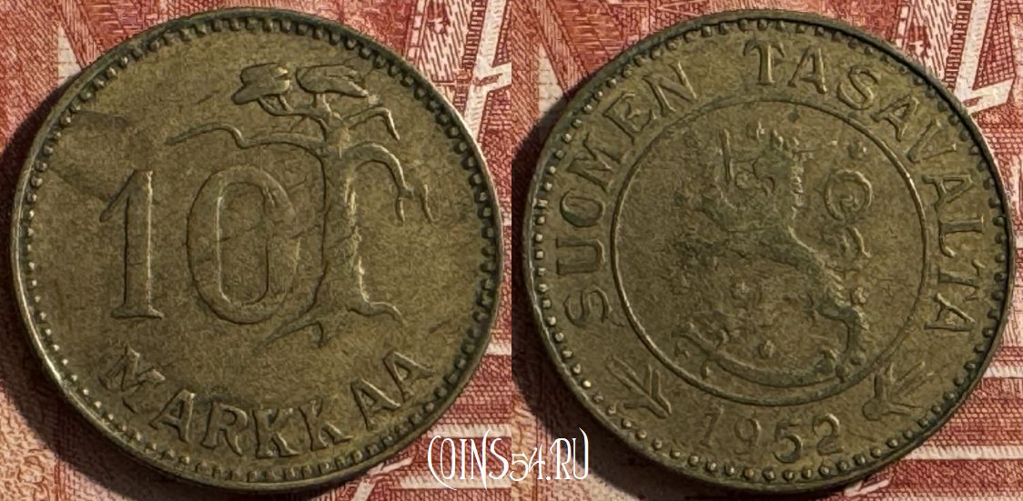 Финляндия 10 марок 1952 года, KM# 38, 505s-019