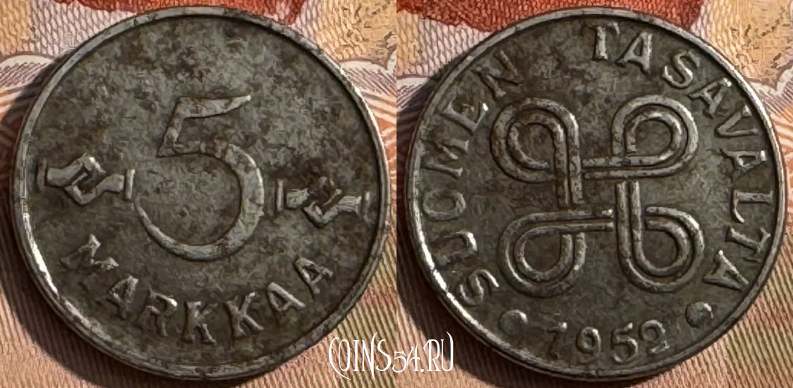 Финляндия 5 марок 1952 года, KM# 37, 437s-051