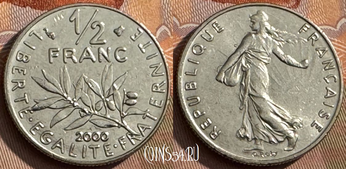 Франция 1/2 франка 2000 года, KM# 931, 389s-036