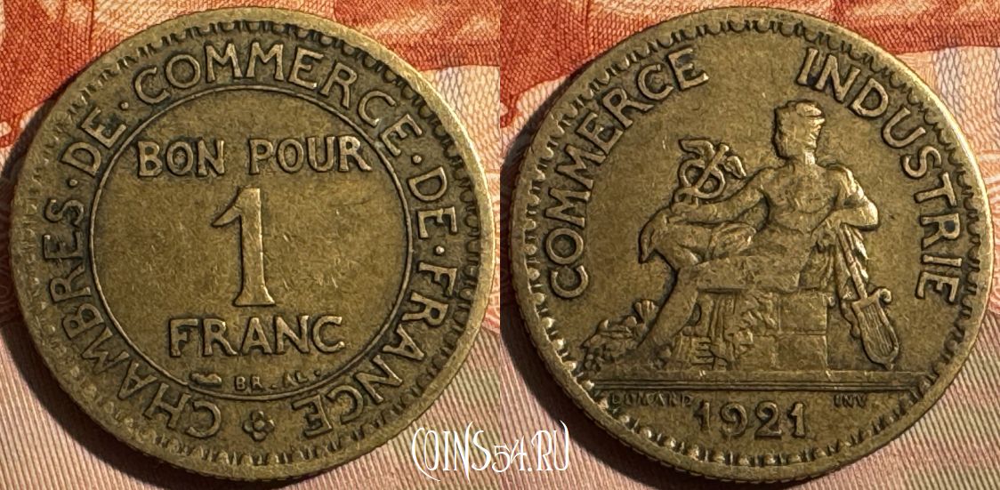 Франция 1 франк 1921 года, KM# 876, 357s-068