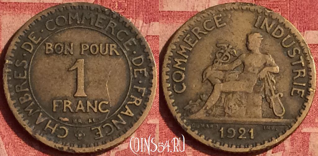 Франция 1 франк 1921 года, KM# 876, 383o-043