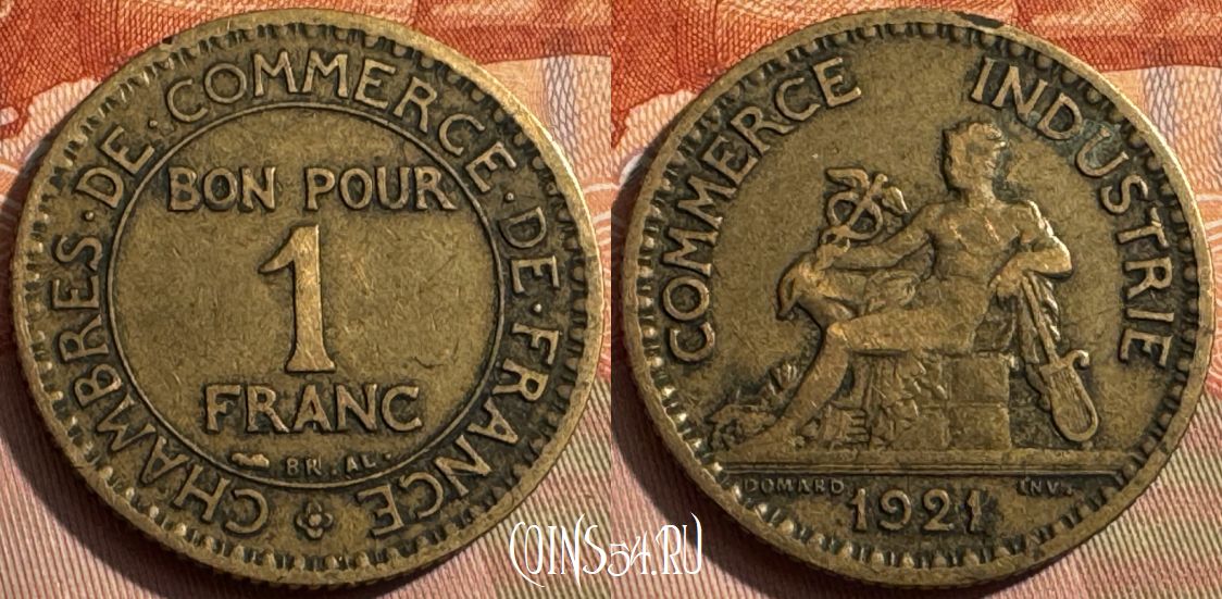 Франция 1 франк 1921 года, KM# 876, 384s-137