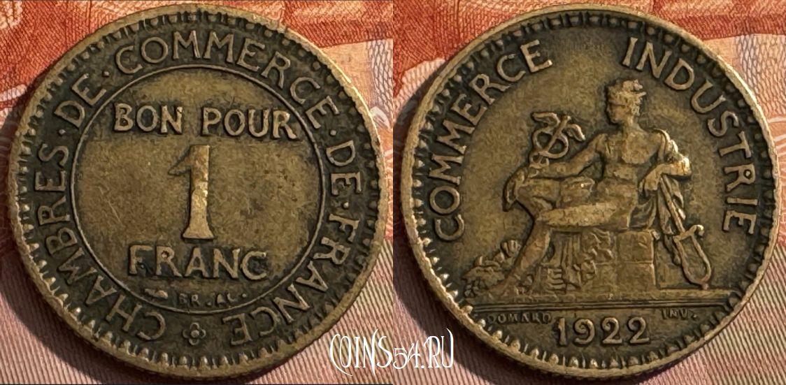 Франция 1 франк 1922 года, KM# 876, 391s-133