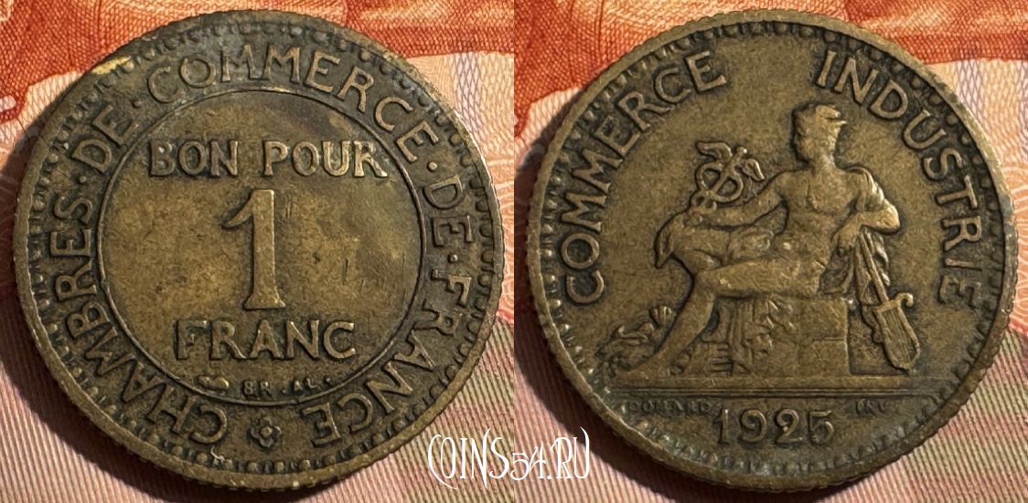 Франция 1 франк 1925 года, KM# 876, 369s-097