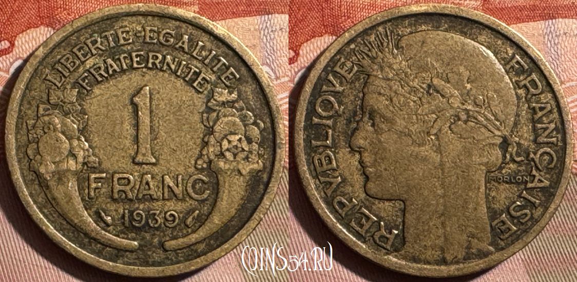 Франция 1 франк 1939 года, KM# 885, 405s-061