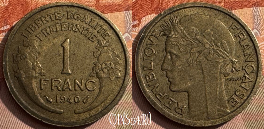 Франция 1 франк 1940 года, KM# 885, 389s-068