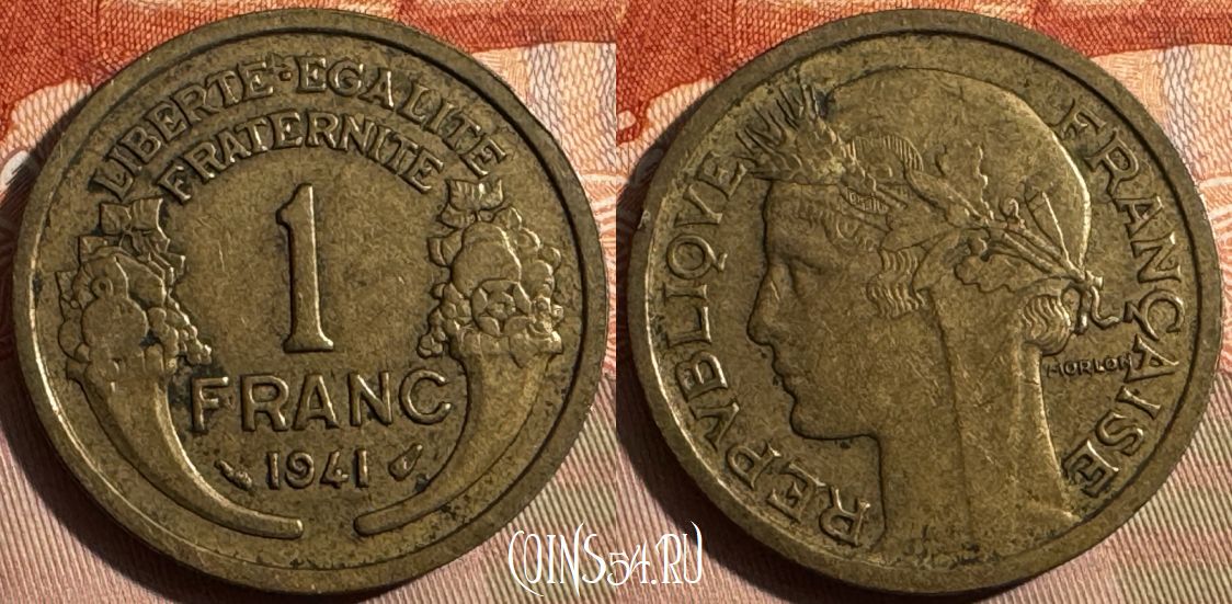 Франция 1 франк 1941 года, KM# 885, 355s-032