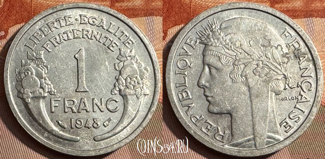 Франция 1 франк 1948 года, KM# 885a, 370s-116