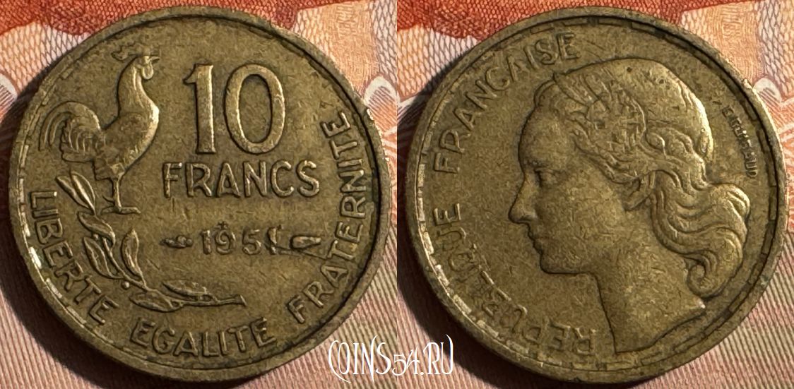 Франция 10 франков 1951 года, KM# 915, 357s-069