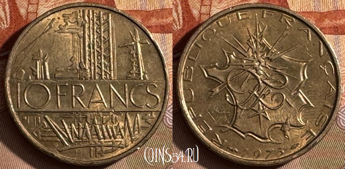 Франция 10 франков 1975 года, KM# 940, 430s-062