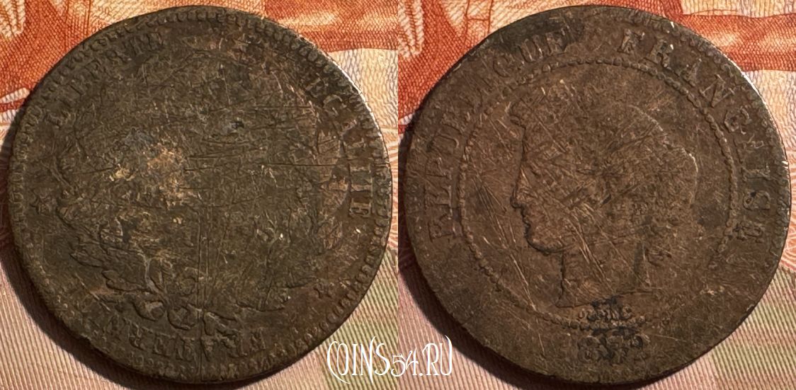 Франция 10 сантимов 1872 года, KM# 815, 398s-092