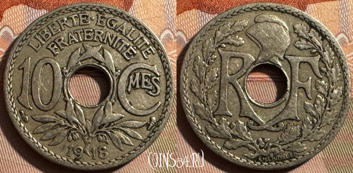 Франция 10 сантимов 1918 года, KM# 866a, 399s-130