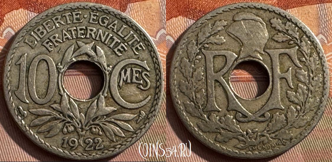 Франция 10 сантимов 1922 года, KM# 866a, 389s-069