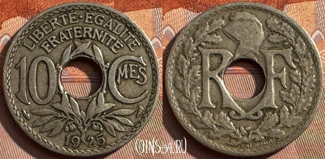 Франция 10 сантимов 1925 года, KM# 866a, 391s-019