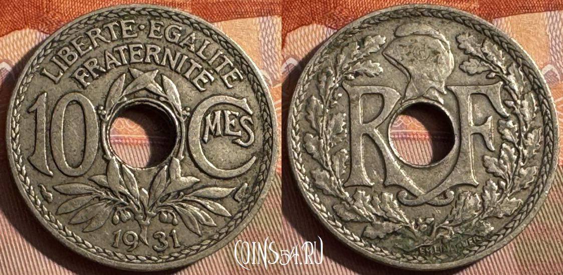 Франция 10 сантимов 1931 года, KM# 866a, 372s-085