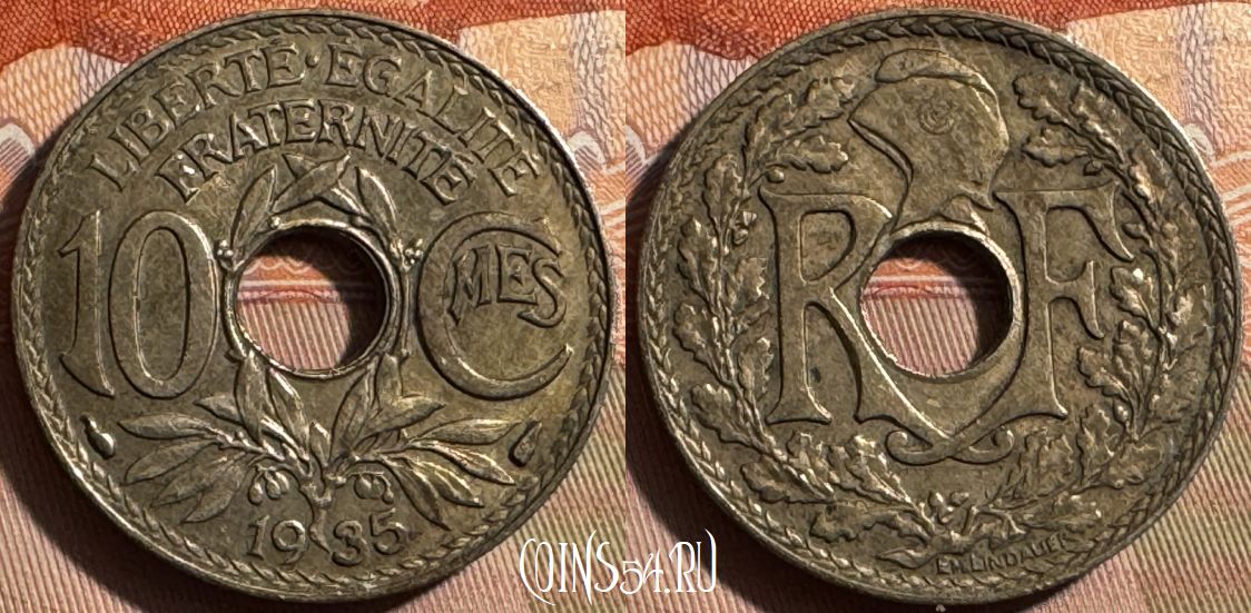 Франция 10 сантимов 1935 года, KM# 866a, 400s-109