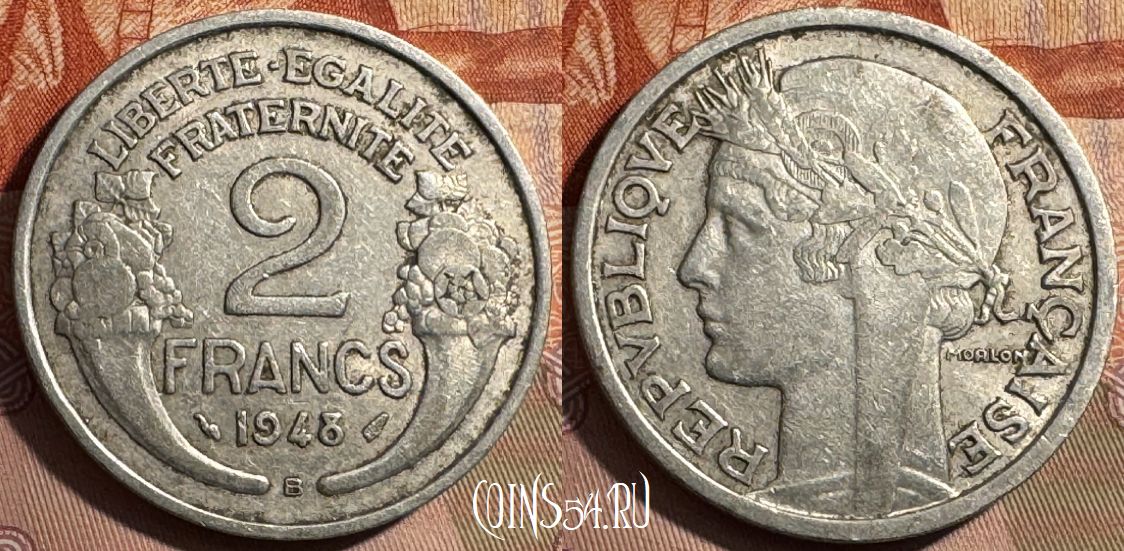 Франция 2 франка 1948 года B, KM# 886a, 402s-135