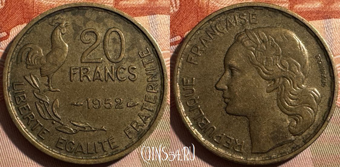 Франция 20 франков 1952 года, KM# 917, 398s-096
