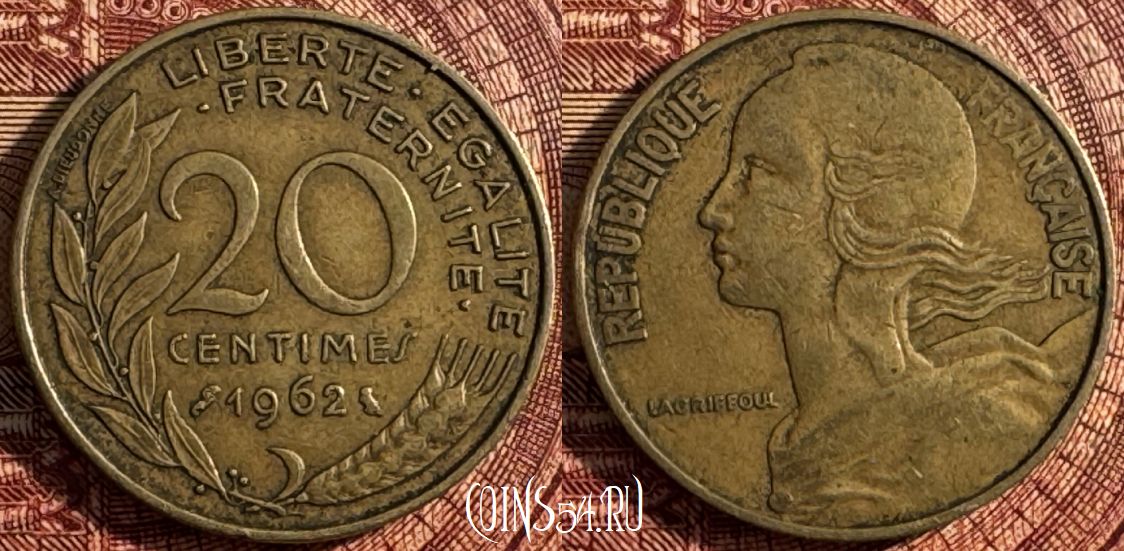 Франция 20 сантимов 1962 года, KM# 930, 369s-009