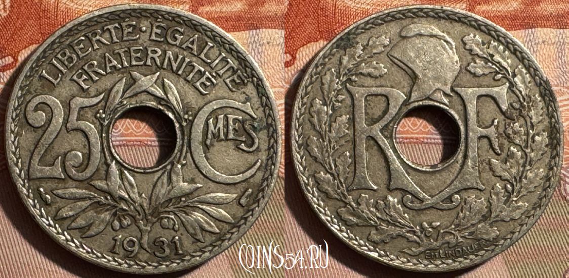 Франция 25 сантимов 1931 года, KM# 867a, 405s-063