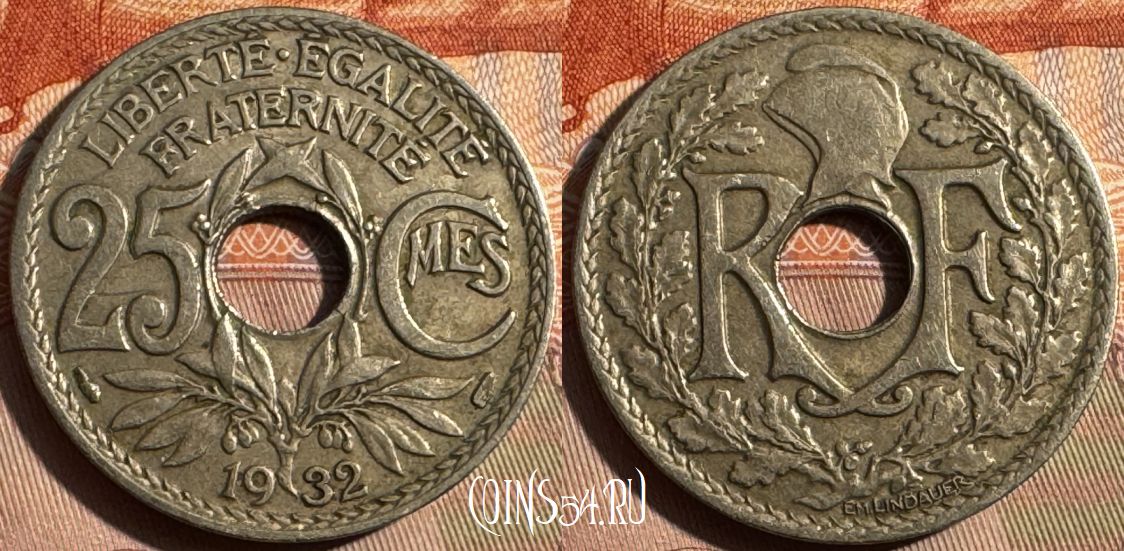 Франция 25 сантимов 1932 года, KM# 867a, 355s-068