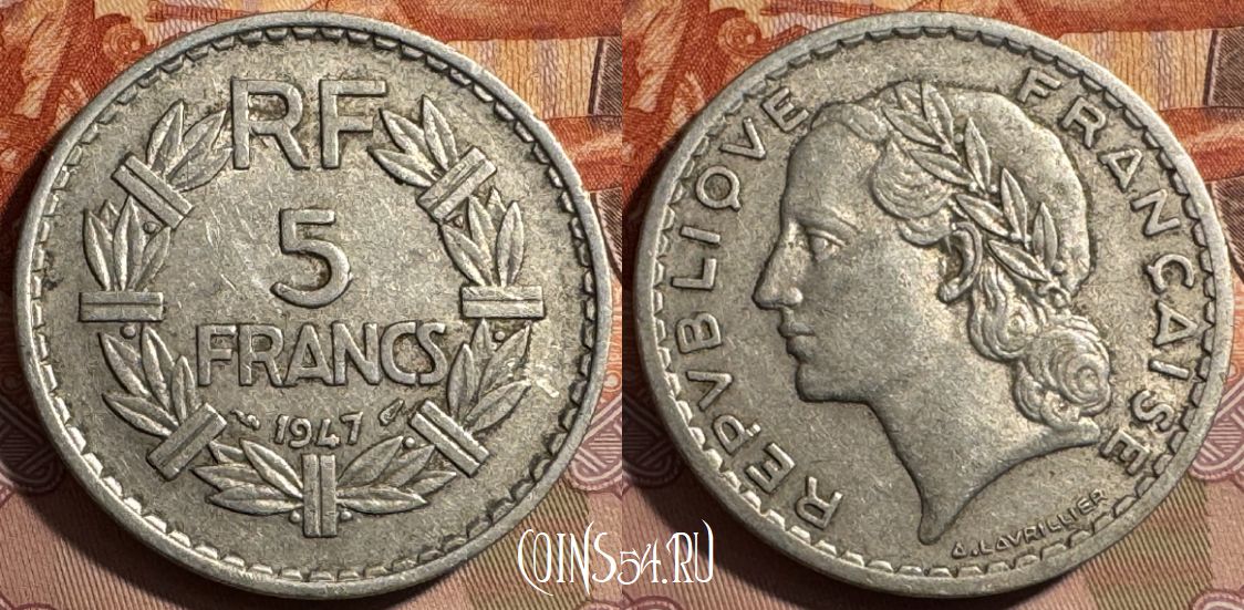 Франция 5 франков 1947 года, KM# 888b, 403s-051
