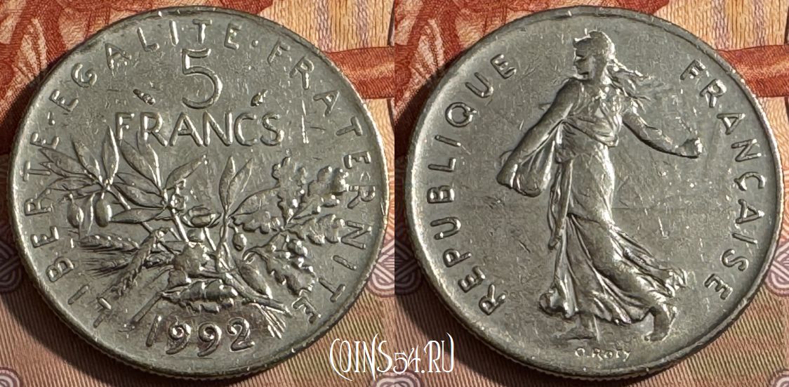 Франция 5 франков 1992 года, KM# 926a, 423s-064