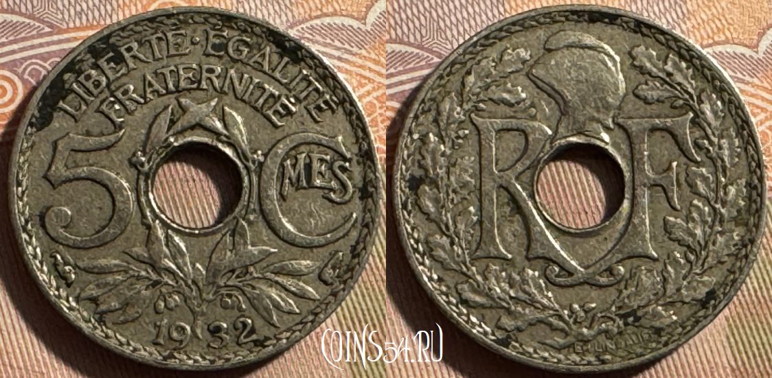 Франция 5 сантимов 1932 года, KM# 875, 396s-092